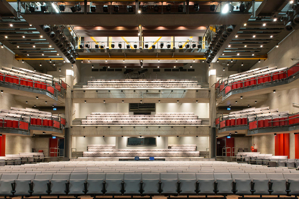 Ternet heeft een nieuwe bediening geleverd via een touchscreen, zowel link als rechts achter de coulissen en in de centrale cabine achter in de zaal (op de foto achter zwarte vlak achter in de zaal). Technisch uitdagend maar vooral qua planning een uitdagende klus die precies ingepast moest worden tussen de “bedrijven” door.