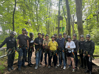 Klimmen en klauteren in de boomtoppen van het Kralingse bos is wel even iets anders dan machines automatiseren en bruggen installeren, maar toch kregen we iedereen de touwen in. Een superleuke en sportieve dag zo net voor de zomervakanties!