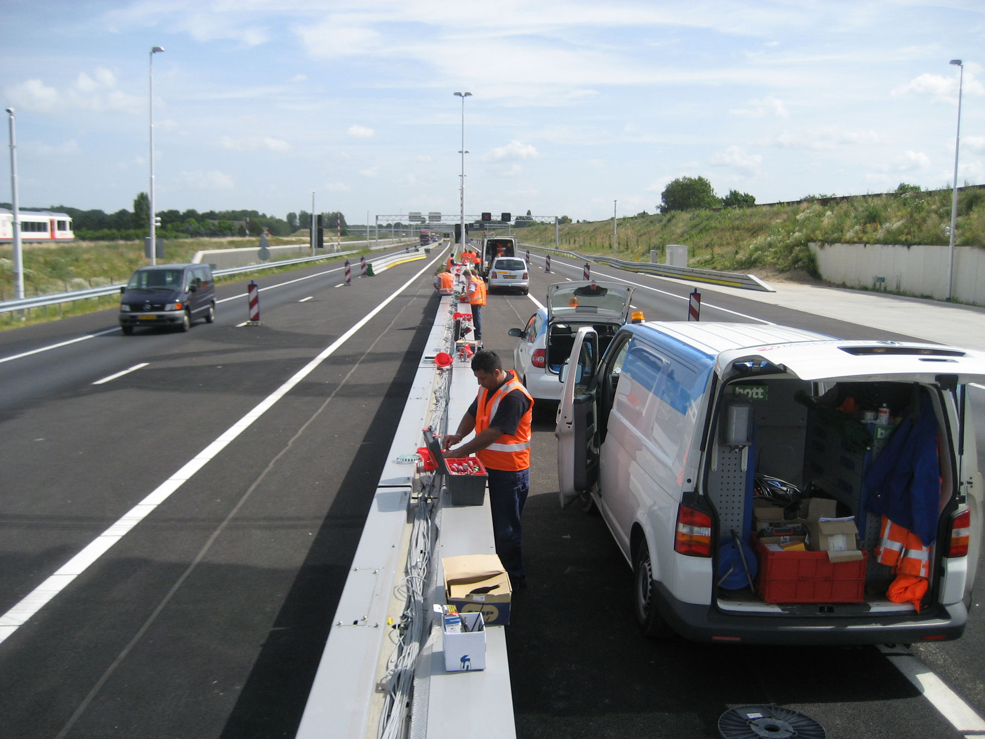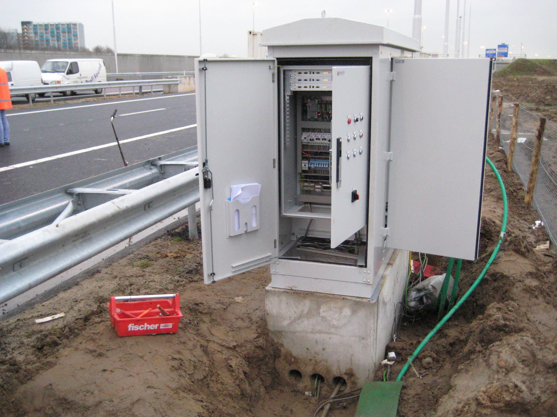 Voor een grote infra-aannemer heeft Ternet de volledige besturing en installatie op zich genomen voor meerdere verplaatsbare vangrails (VEVA's) en calamiteiten doorgangen (CADO). In goede samenwerking met de opdrachtgever, andere (mechanische) onderaannemers en Rijkswaterstaat is een innovatieve besturing en gedegen installatie gerealiseerd. Onze ervaren monteurs hebben in nauwe samenwerking met de verkeersregelaars en in een zeer korte doorlooptijd de installatie in de vangrails geplaatst.